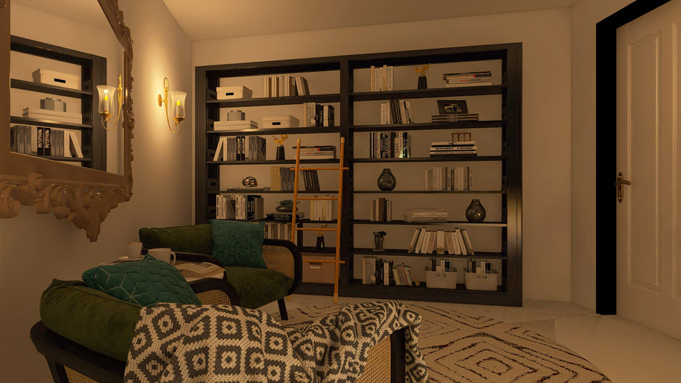 A series of elegant work and relaxation spaces featuring custom cabinetry, warm wood details, and sculptural lighting. The refined offices and cozy library with a modern fireplace create a harmonious blend of luxury, comfort, and intentional design.